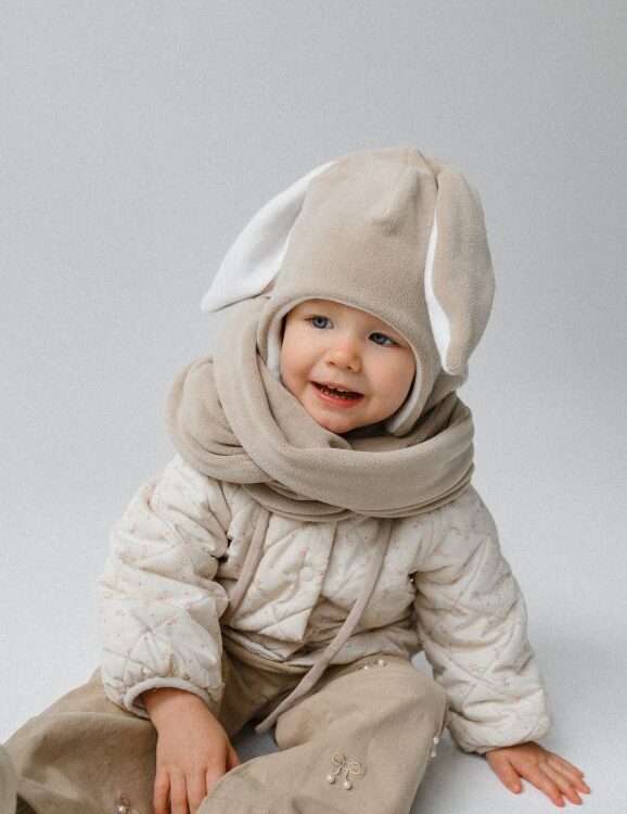 Комплект ВЕДМЕЖАТКО+рукавички – беж молочні бантики