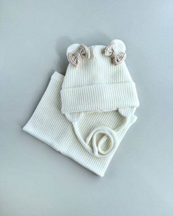 Комплект зимовий шапочка+хомут+рукавички, утеплені флісом. Помпон натуральний, на кнопці