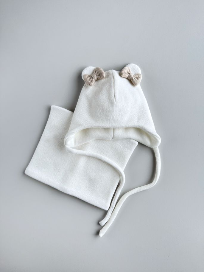 Комплект зимовий шапочка з бантиками+хомут, утеплені флісом. Бантики пришиті.
