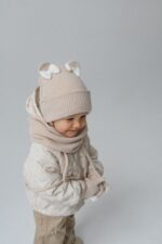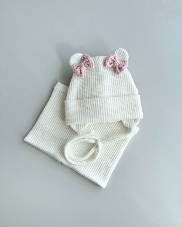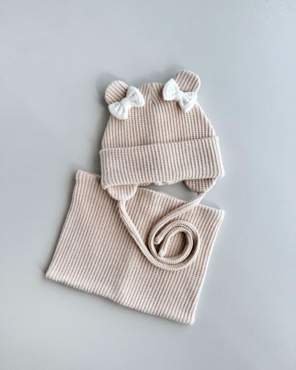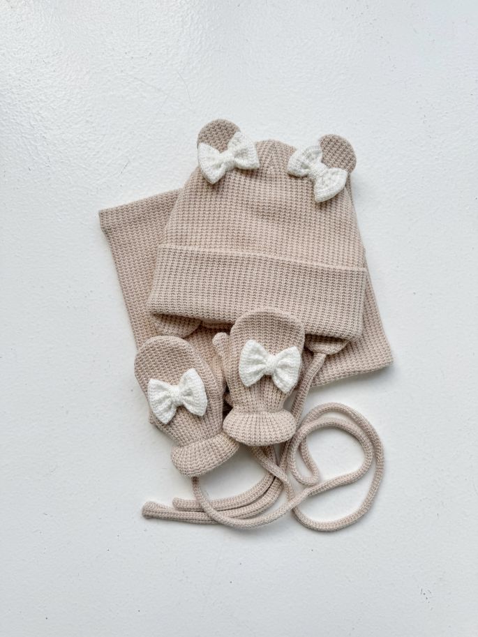 Комплект ВЕДМЕЖАТКО+рукавички – беж молочні бантики