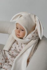 Комплект зимовий шапочка з вушками зайчика та шарф. Довжина шарфа 150-152 см.