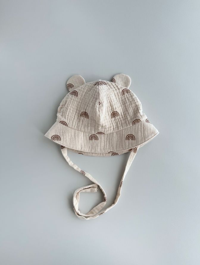 Муслінова панама з вушками та зав’язками, гарно захищає від сонця, зручна та невагома
