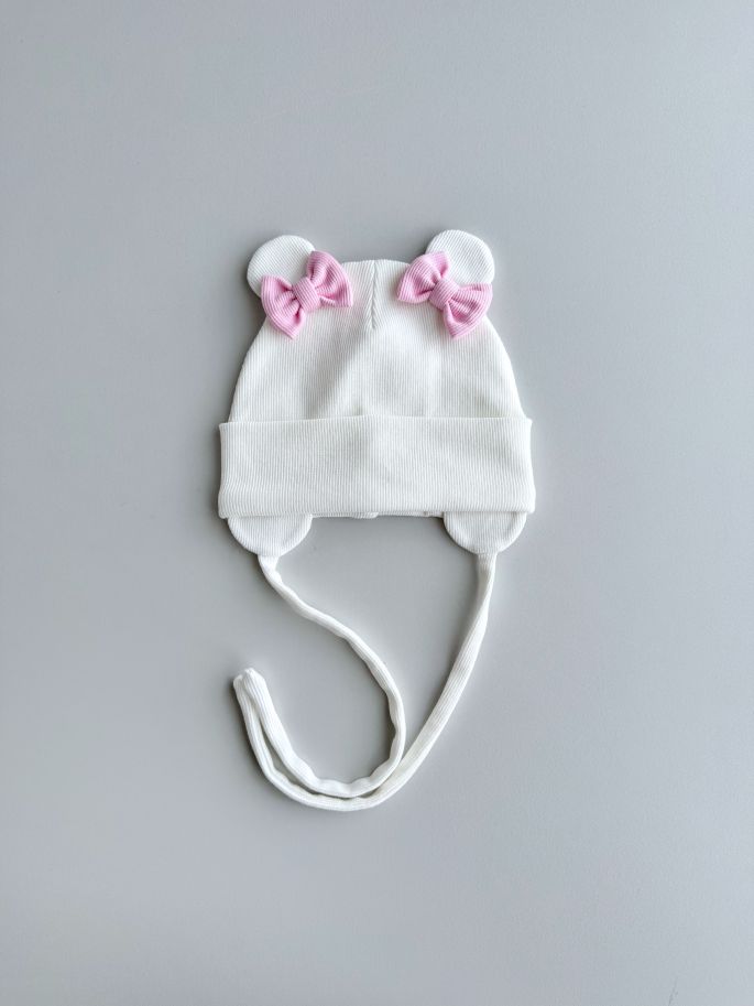 Шапочка МІНІ2 – молочний з рожевими бантиками