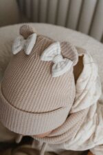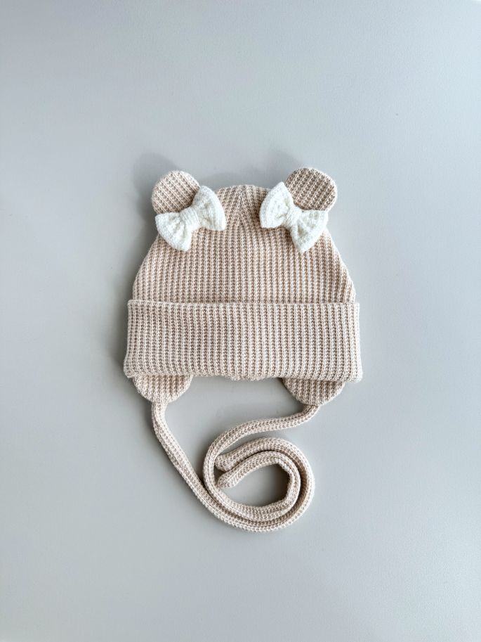 Шапочка ВЕДМЕЖАТКО – беж білі бантики