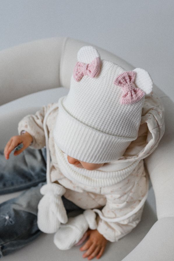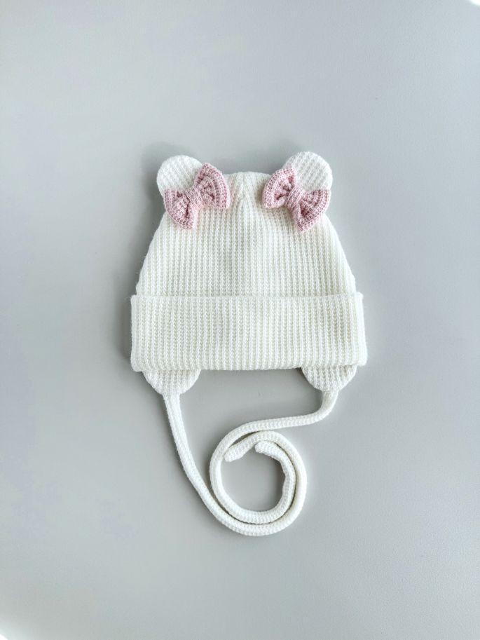Шапочка ВЕДМЕЖАТКО – молочний рожеві бантики