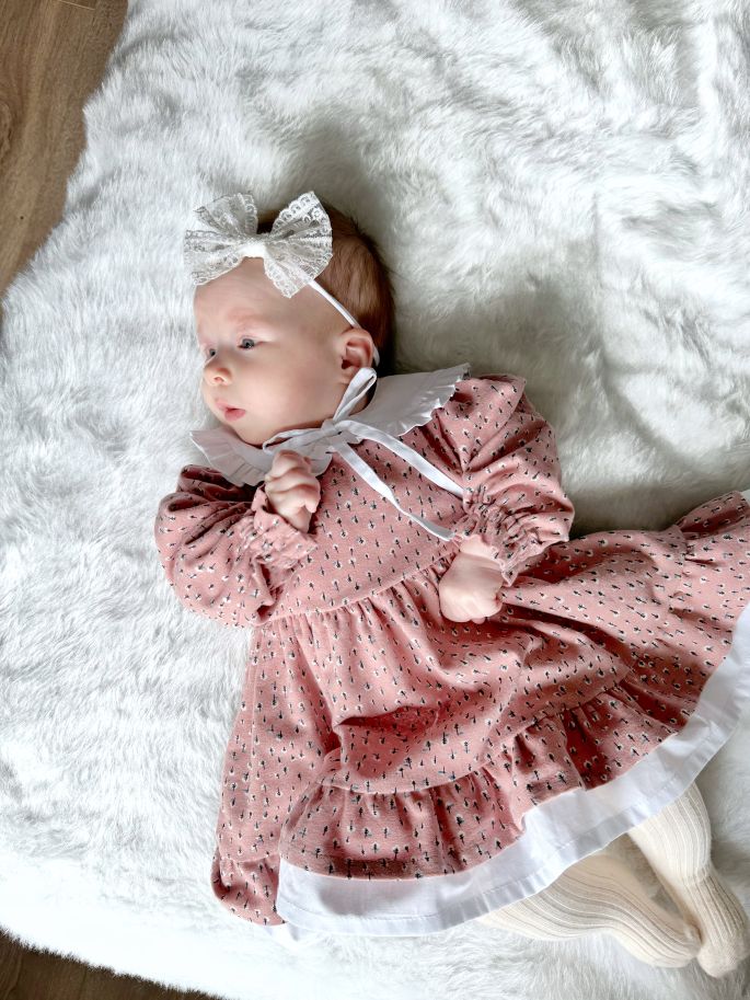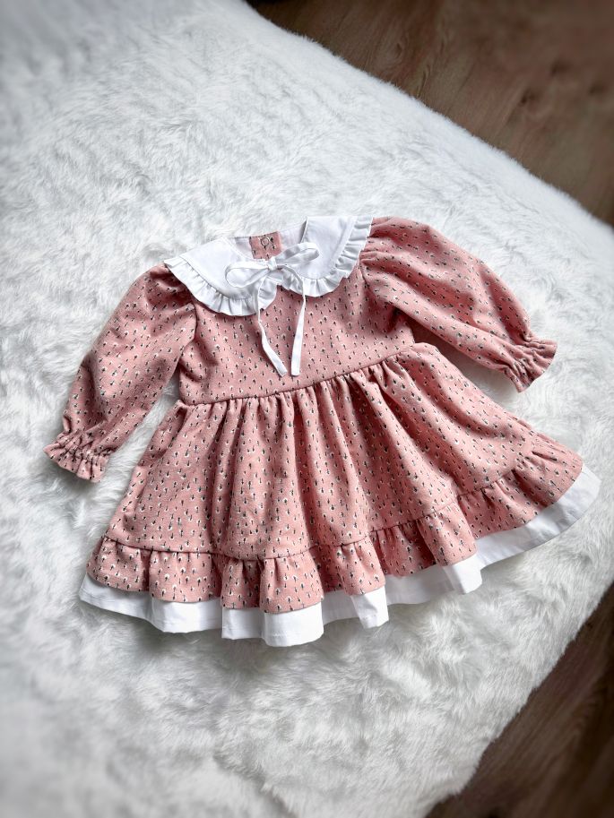 Сукня зі з’ємним комірцем, пошита з теплої бавовни.